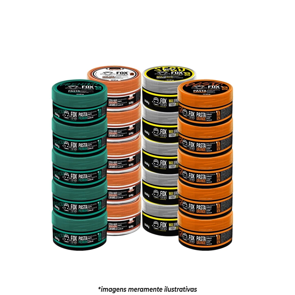 COMBO MODELADORA FOX FOR MEN 80GR - 5 Pasta Premium 5 Cera Caramelo 5 Toque Seco 5 Pasta Orange