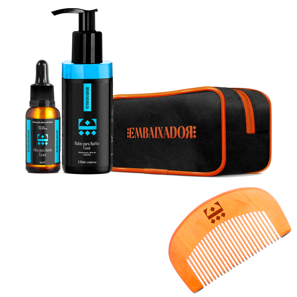 KIT BARBA + NECESSAIRE - 1 BALM + 1 ÓLEO PARA BARBA + 1 PENTE DE BARBA GOOT EMBAIXADOR