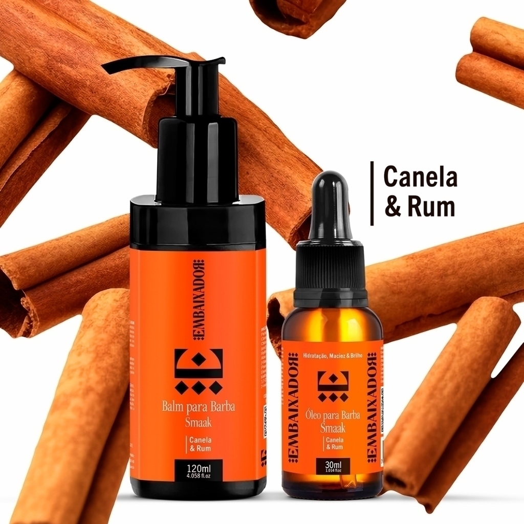Kit para Barba Smaak Canela & Rum Embaixador - Óleo e Balm para Barba
