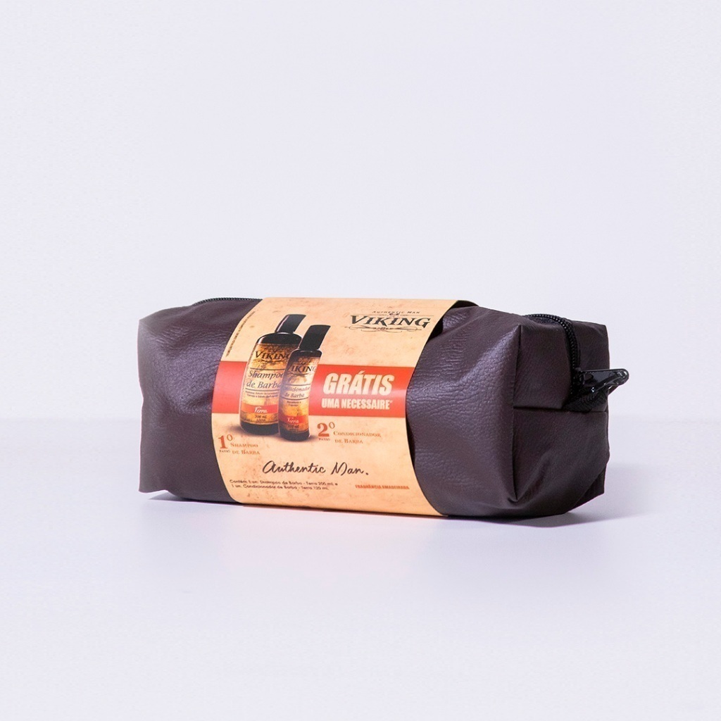 Kit Necessaire para Barba Viking - Shampoo e Condicionador de Barba - Terra