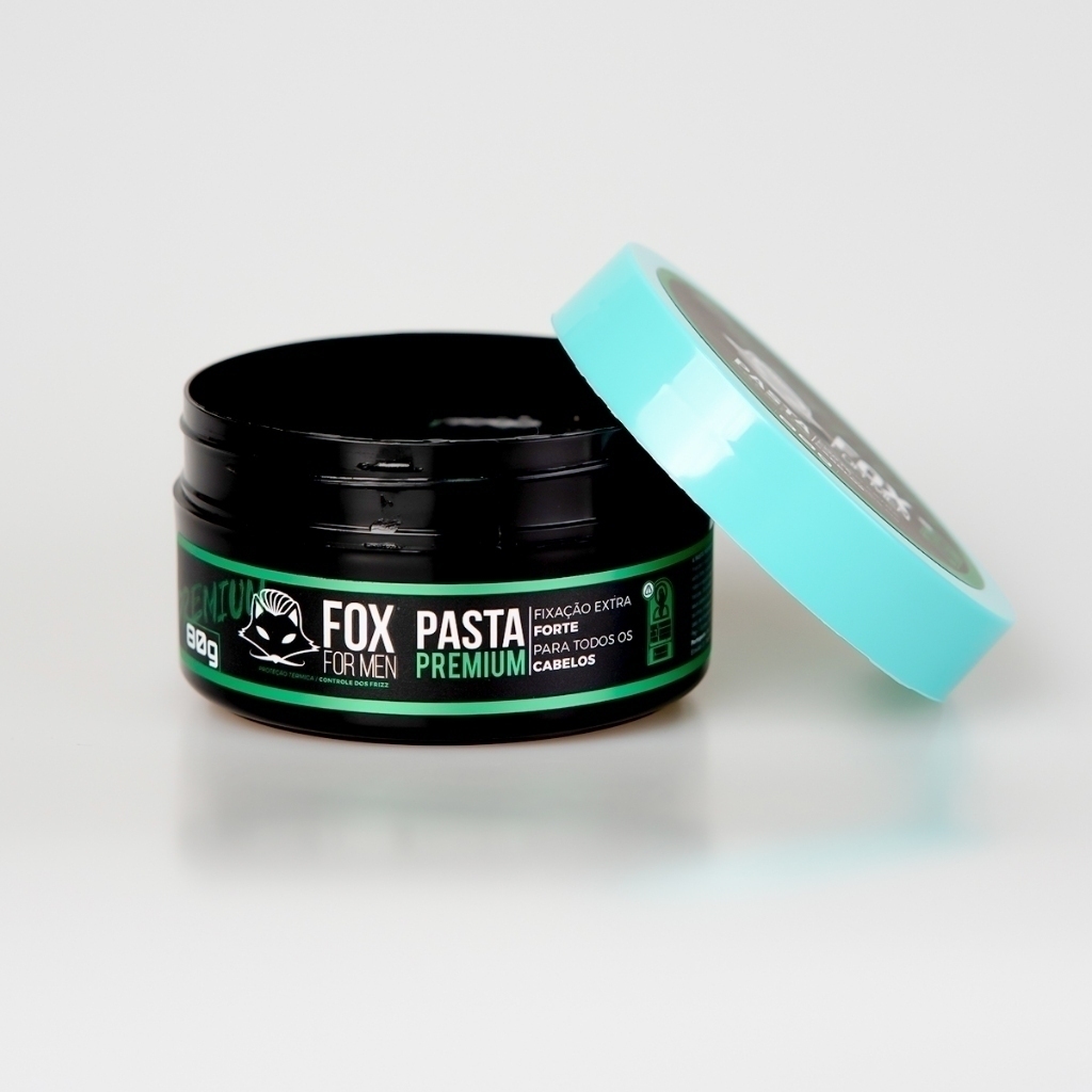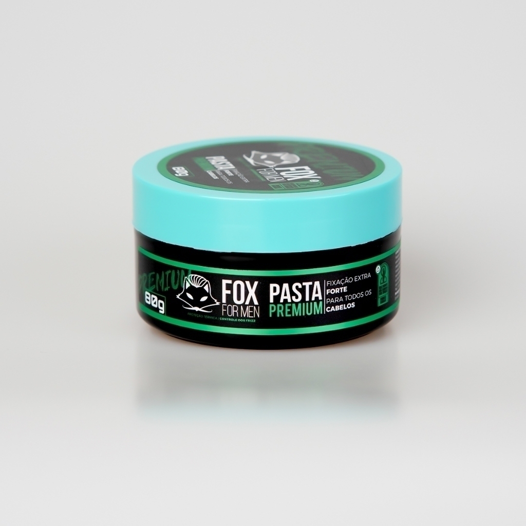 PASTA MODELADORA PREMIUM FOX FOR MEN 80GR - EFEITO BRILHO MOLHADO A PASTA PREMIUM da FOX FOR MEN é feita à base de água para todos os tipos de cabelos. Com ela, você conseguirá modelar penteados e finalizar o visual de forma natural e sem deixar resíduos. Previne o ressecamento do cabelo e fortalece os fios, possuindo brilho natural e fixação extra forte, excelente opção para um estilo de penteado mais casual. Modo de usar: Aplique em cabelos úmidos ou seco com a quantidade suficiente para modelar (quantidade sugerida 2 a 5 g). Pentear ao seu modo. Para retirar basta lavar com água corrente.